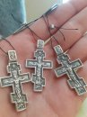 Изображено на фото: Распятие Христово. Архангел Михаил. Православный крест.Длина: 3.1 см